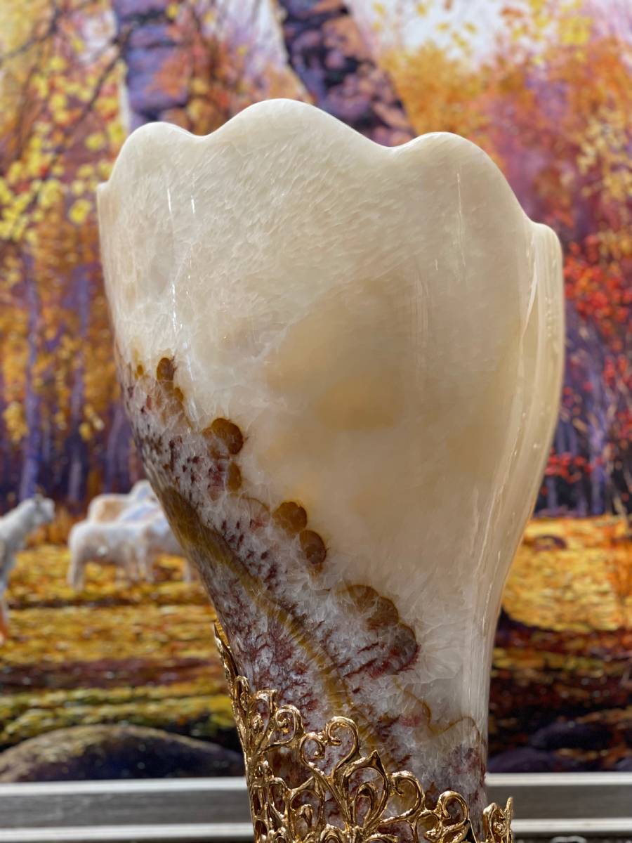 • Bình được làm bằng đá cẩm thạch tự nhiên nguyên khối với tone màu trắng vàng chủ đạo đan xen nhau