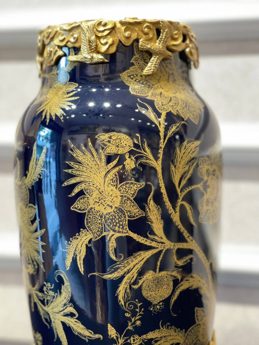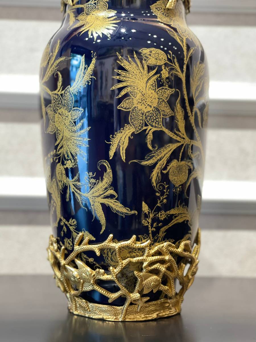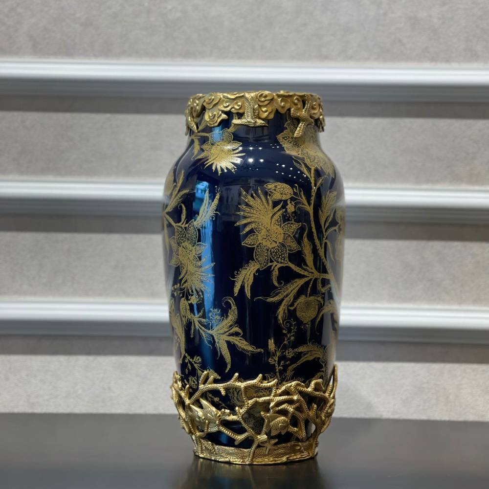 Bình sứ tone xanh họa tiết hoa văn ôm trọn thân bình là một món đồ trang trí nhà cửa độc đáo và tinh tế, mang đến nét đẹp sang trọng và ý nghĩa sâu sắc cho không gian sống của bạn.