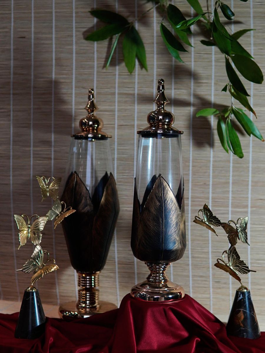 Bộ có hai bình thiết kế nắp đậy mạ vàng có tay cầm tiện lợi