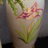 Bình thuỷ tinh hoa rum tên tiếng anh Arum màu sắc sặc sỡ được vẽ trên thân bình, phần cổ và chân bình được mạ vàng.