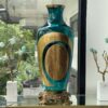 Bình thủy tinh tone xanh với thiết kế dáng hút lộc kết hợp chân đế mạ vàng có thể trang trí trên bàn, kệ hay món quà tặng đầy ý nghĩa