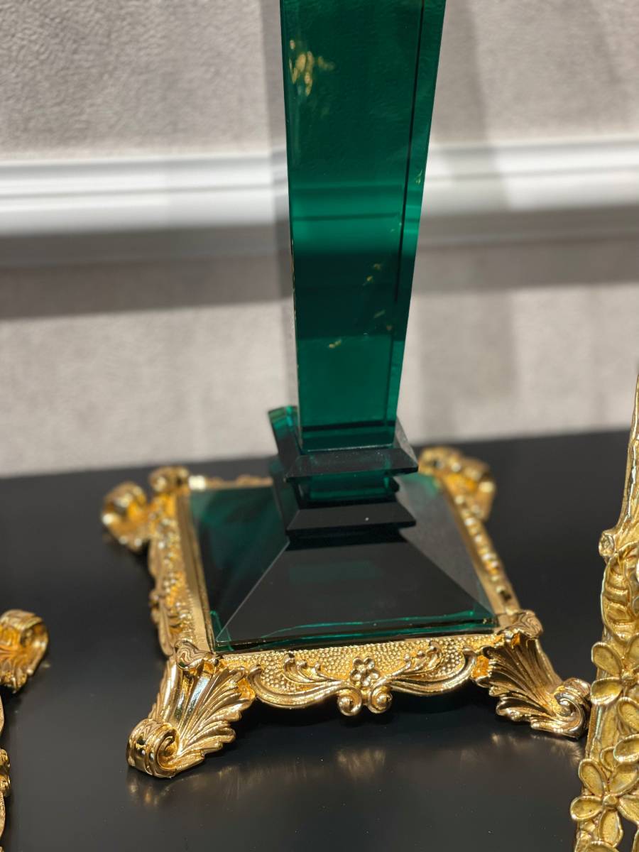 Chân Nến Pha Lê Kết Hợp Họa Tiết Hoa Văn Đồng Vàng: Biểu Tượng Của Sự Sang Trọng Và May Mắn