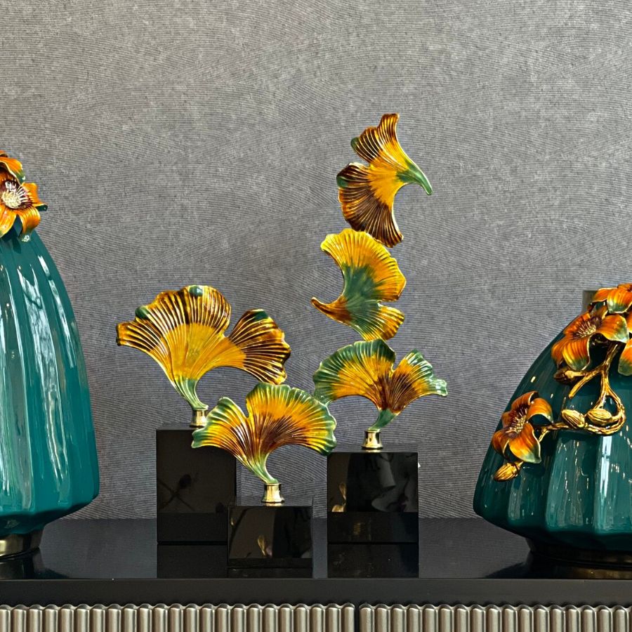 • Đồ trang trí bằng đồng kết hợp với vẽ màu và được đặt trên đế đá cẩm thạch đen