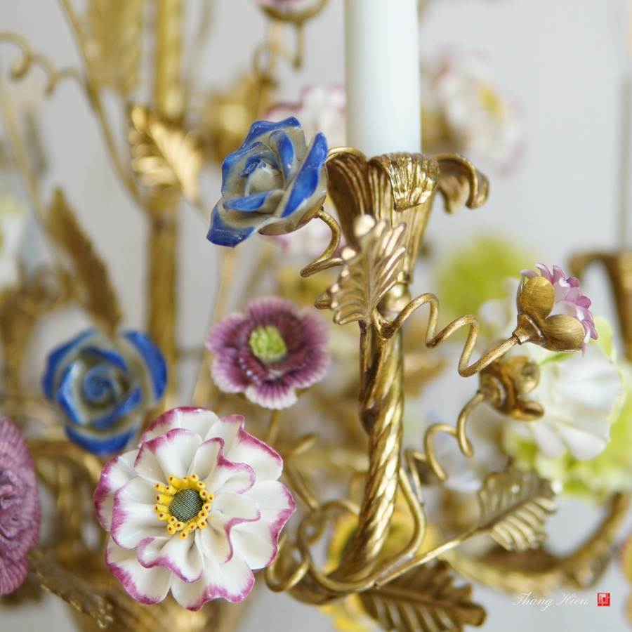 Toàn bộ tác phẩm bằng đồng mạ vàng 14K và đặt trên đế đá xanh giúp cho người chiêm ngưỡng sản phẩm nhìn thấy đèn cách tổng thể nhất.