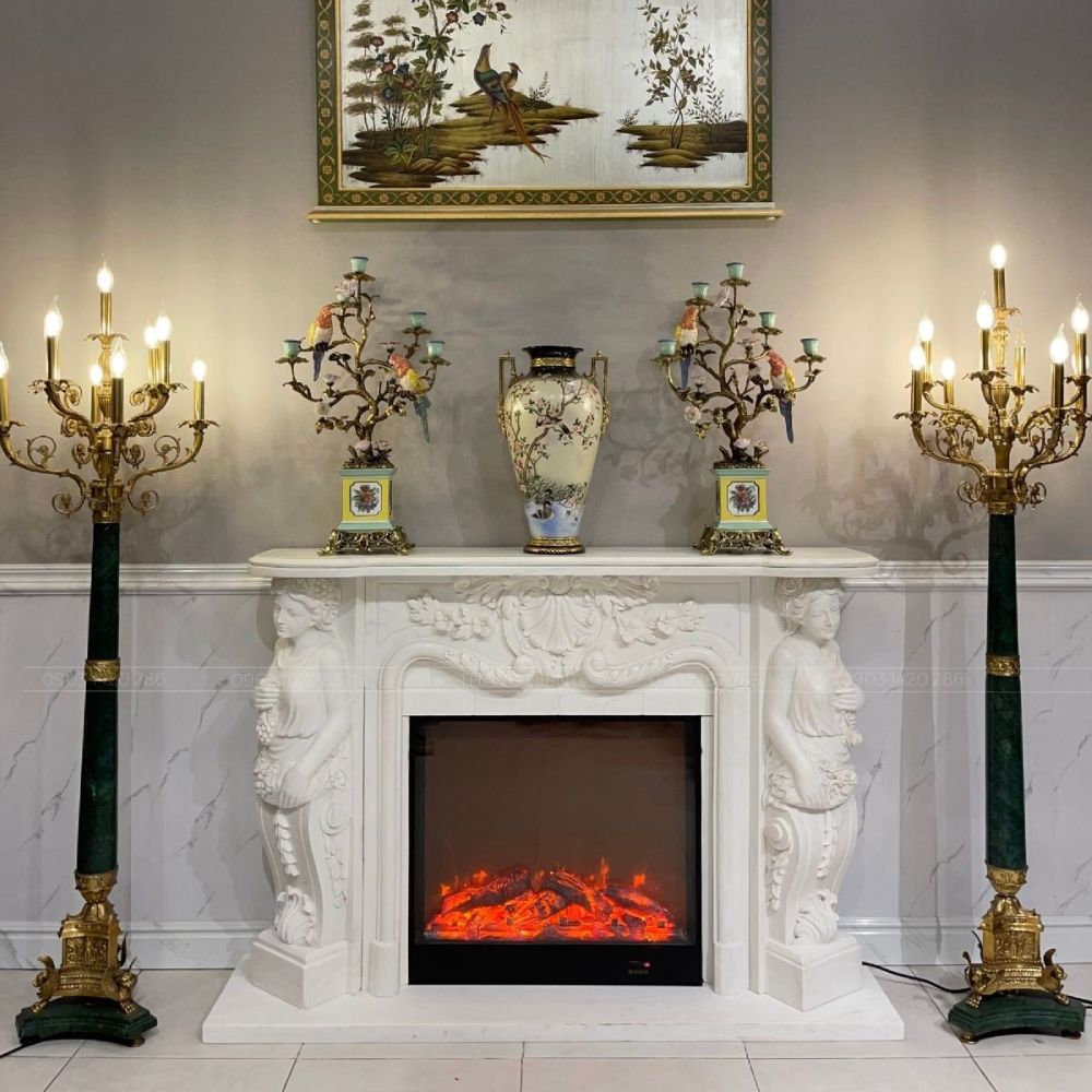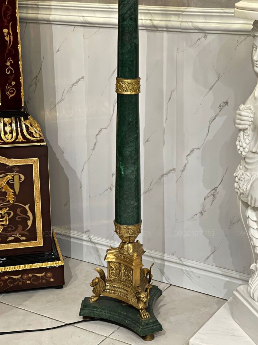 Thân đèn và đế đèn được làm từ đá Cẩm thạch màu xanh, phù hợp với nhiều không gian trong nhà.