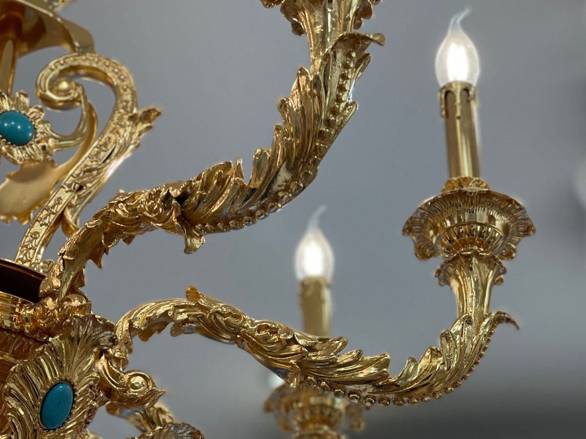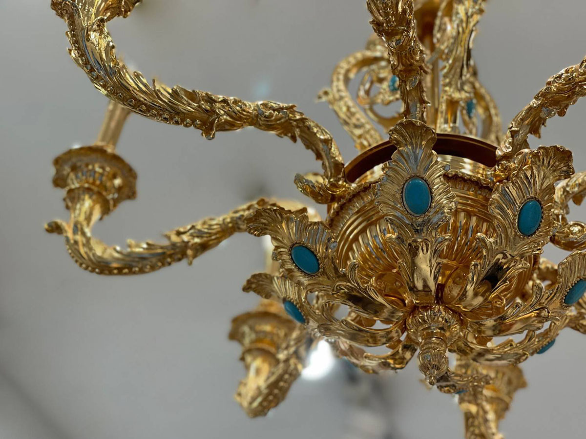 Đèn chùm đồng mạ vàng 24K của Pháp