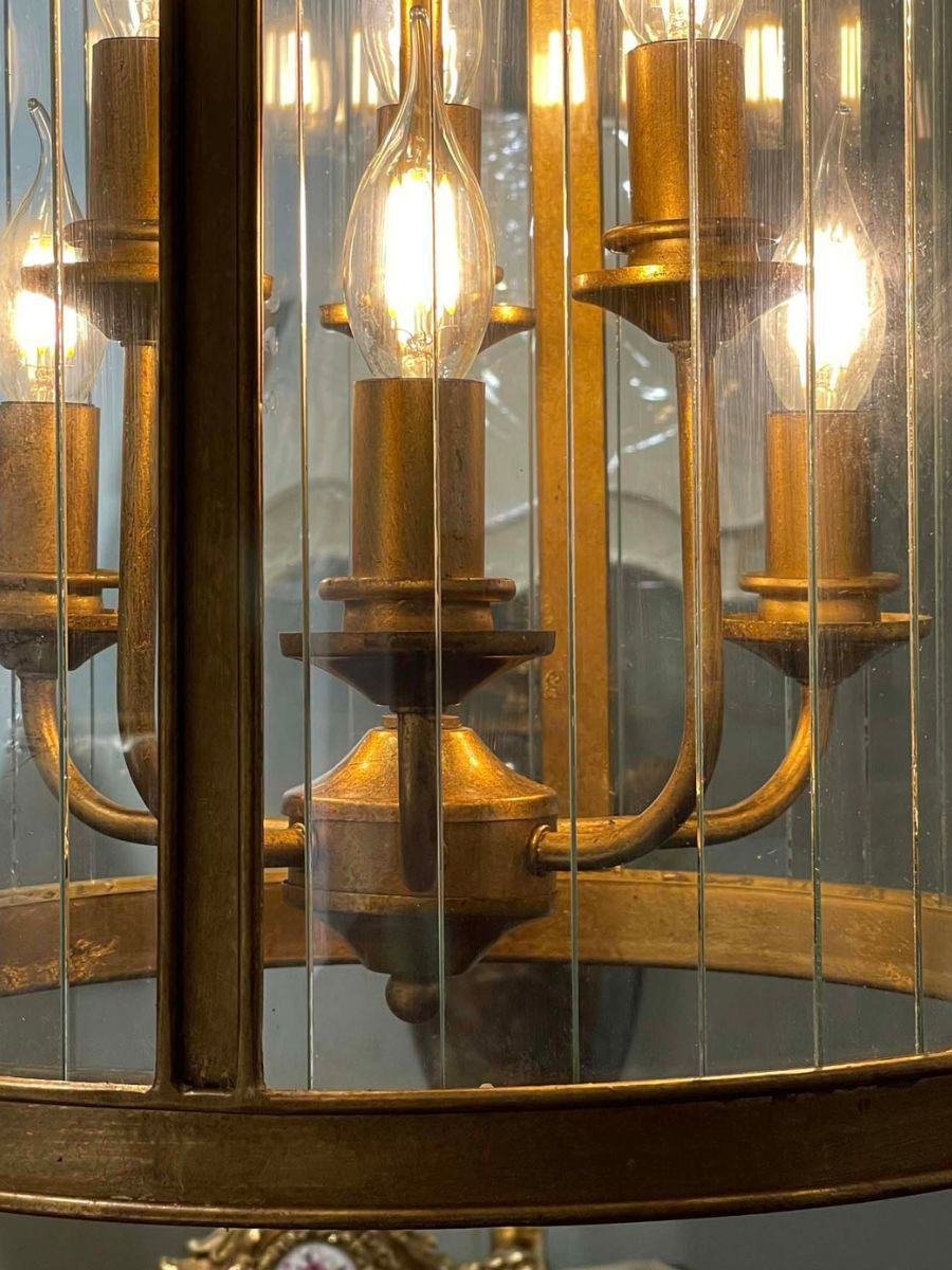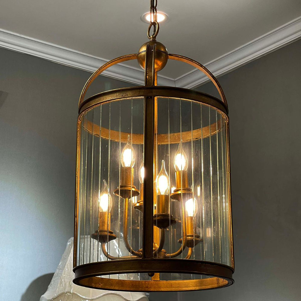 Đèn có các nan kính xếp cạnh nhau khiến cho ánh sáng cảu các bóng đèn phía trong thêm phần lung linh, mờ ảo. Với dây xích có độ dài lên tới hơn 1m giúp cho việc treo có thể điều chỉnh độ dài ngắn theo ý muốn mợt cách dễ dàng.