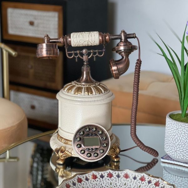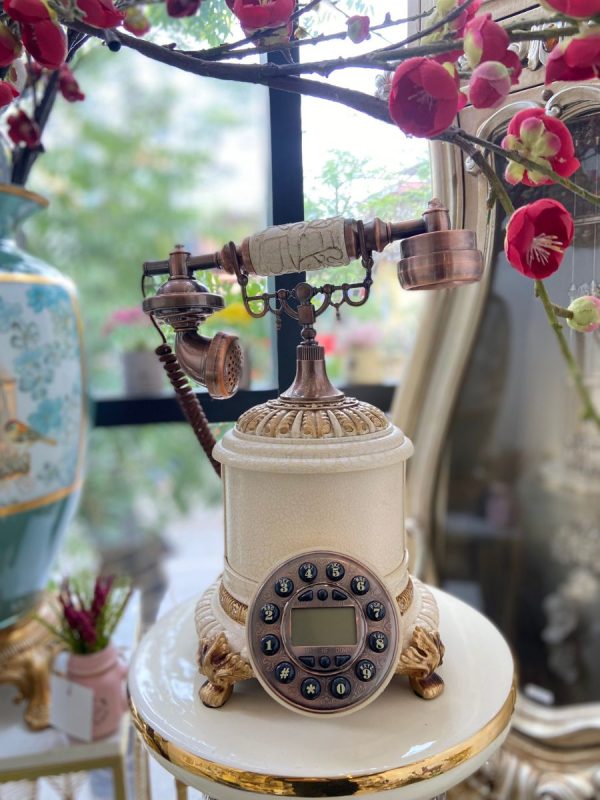 Điện thoại bàn cổ điển có các chi tiết được điêu khắc tinh xảo, kết hợp mạ vàng tự nhiên theo phong cách cổ điển, rất ấn tượng và vô cùng đẹp mắt giúp không gian sống của bạn trở nên sang trọng, cổ kính bất ngờ