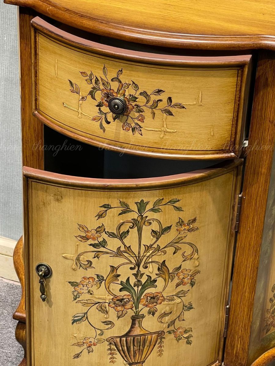Đôn gỗ trang trí được tạo nên từ chất liệu gỗ với thiết kế tinh giản, tập trung vào tính năng: Nhằm mục đích tối ưu hóa công năng sử dụng của những sản phẩm nội thất. Sản phẩm đôn gỗ còn được kết hợp vẽ hoạ tiết trên bề mặt, đôn có 2 ngăn tủ.