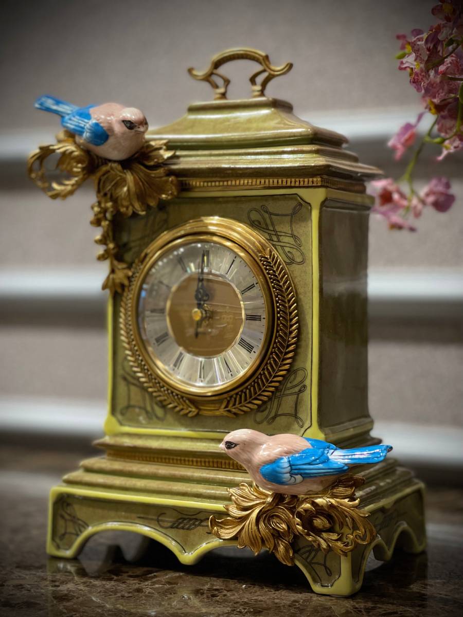 Đồng hồ để bàn châu Âu bằng sứ hình đôi chim – Nét đẹp sang trọng và ý nghĩa