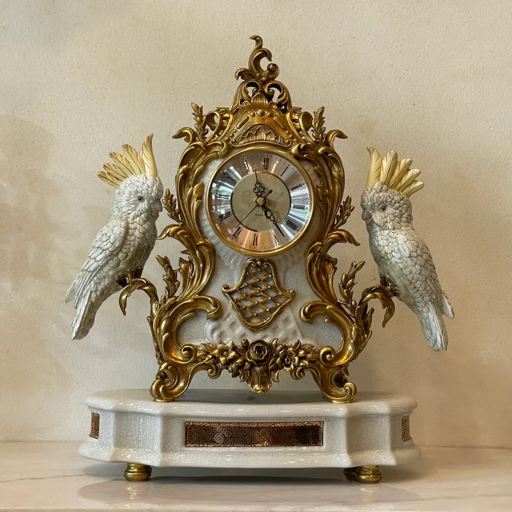 Đồng hồ sứ châu Âu họa tiết đôi vẹt: Nét đẹp sang trọng và ý nghĩa phong thủy