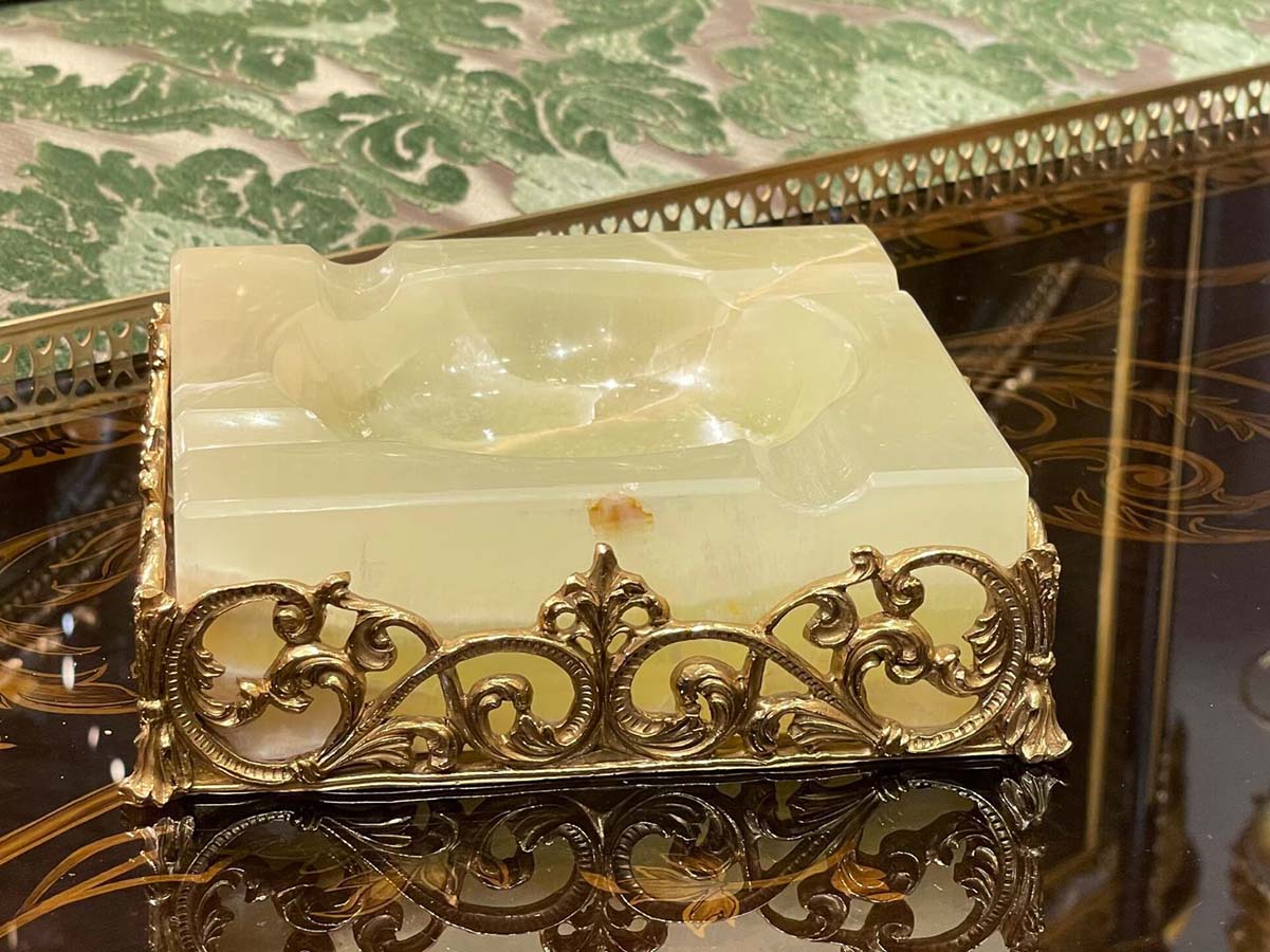 Toàn bộ khối đá được đặt trong đế đồng vuông, khi cần vệ sinh có thể nhấc cả khối đá ra để rửa. Với bốn rãnh ở bốn cạnh to để vừa điếu xì gà. Gạt tàn có thể để ở phòng khách, phòng hút thuốc, phòng giải trí,… hay làm quà tặng độc đáo.