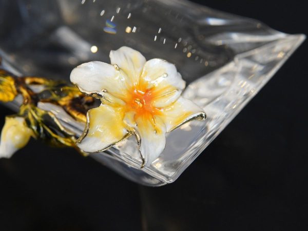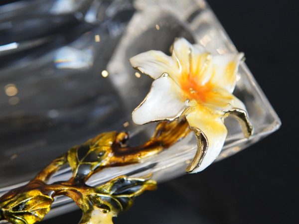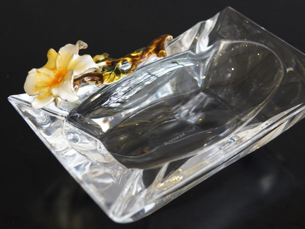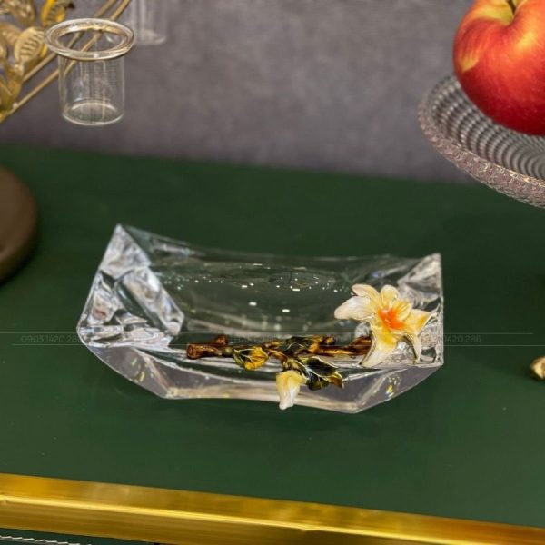 Gạt tàn được tạo nên từ chất liệu thuỷ tinh cao cấp được thiết kế đường nét tinh xảo. Kết hợp thêm 1 nhành hoa chi thuỷ tiên vàng bằng sứ vô cùng bắt mắt tạo cảm giác mềm mại không thô cứng.