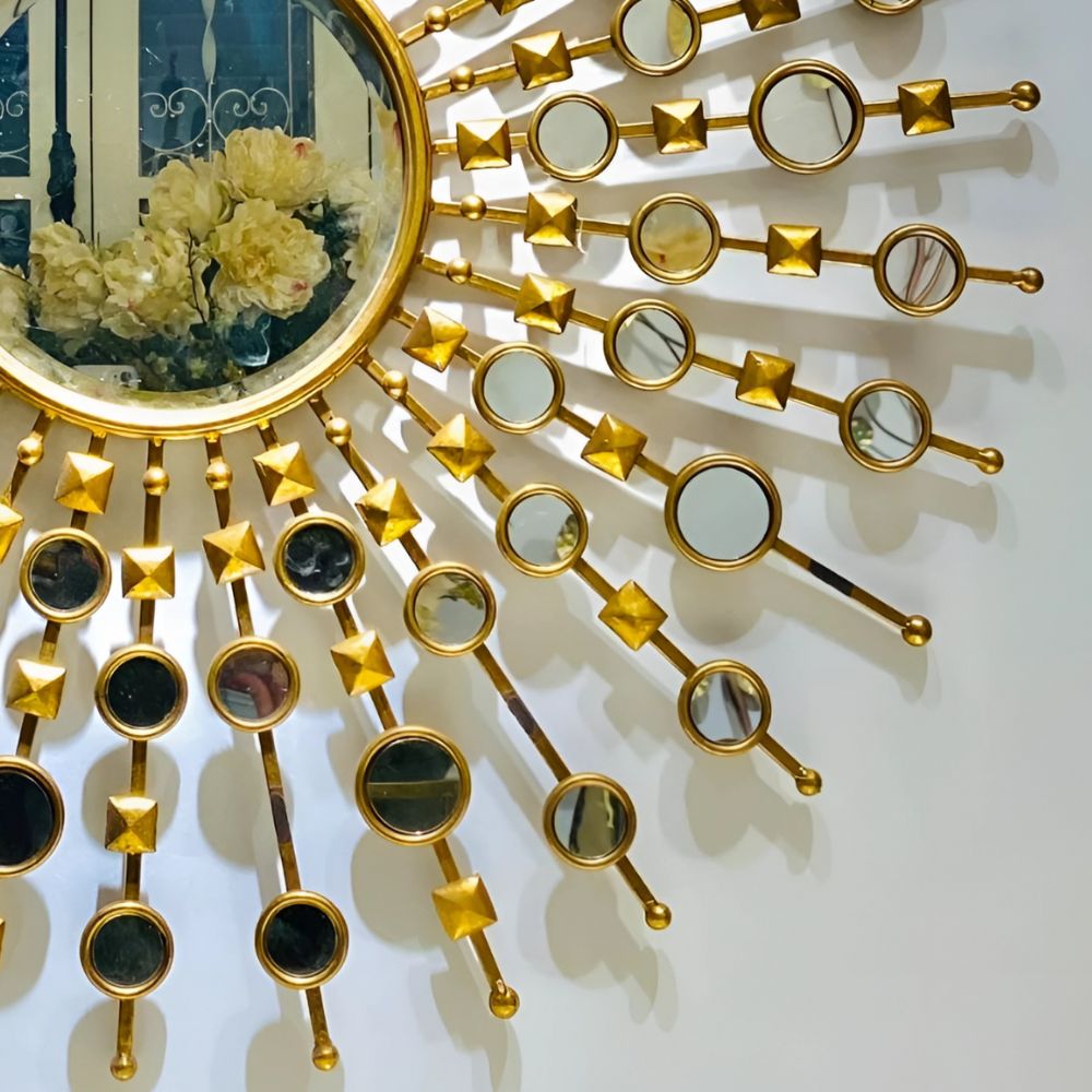 Gương trang trí một dòng gương mới với vẻ đẹp độc đáo, sự sang trọng và tính ưu việt của sản phẩm so với các dòng gương khác đó chính là gương trang trí decor. Được làm bằng hợp kim kết hợp với sơn tĩnh điện đảm bảo độ bóng, đẹp và bền màu cao.Tổng thể là những tia ánh sáng mặt trời rực rỡ.
