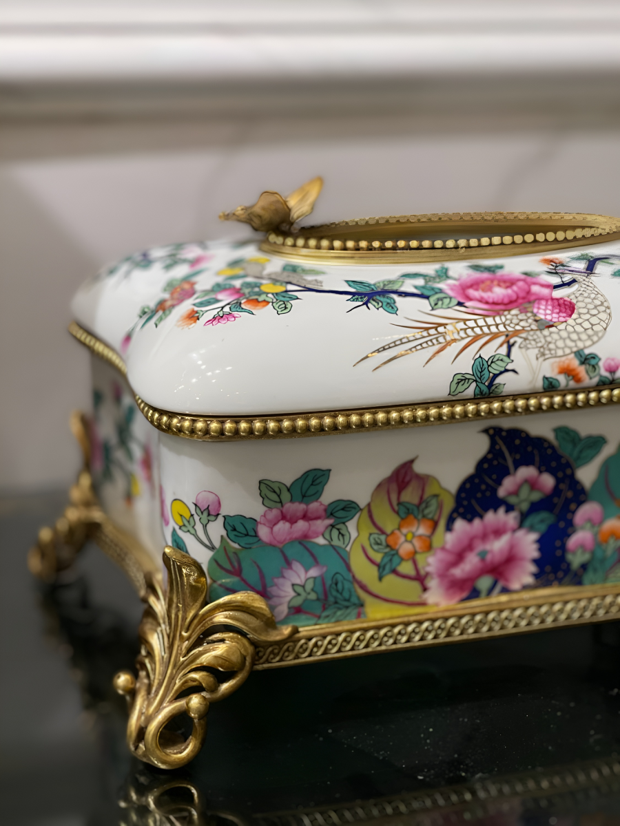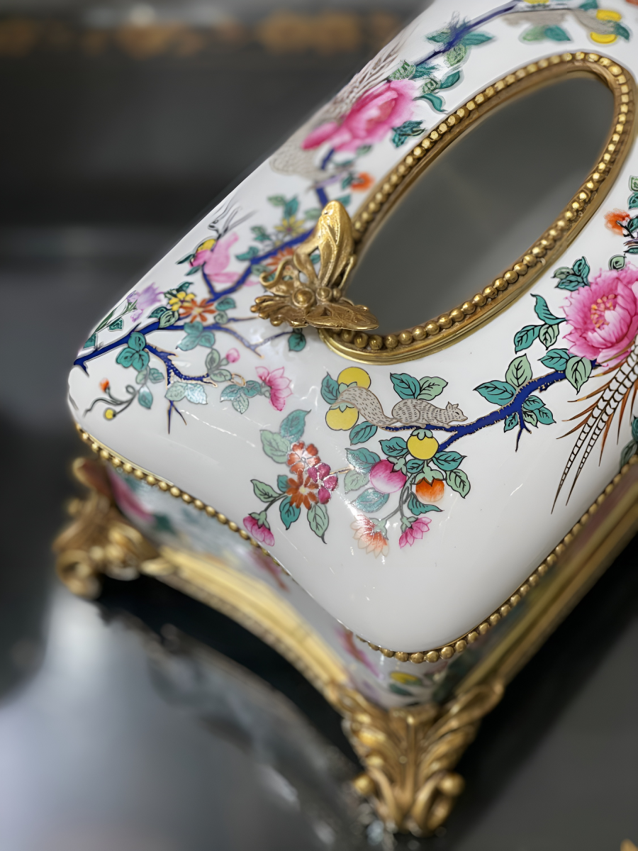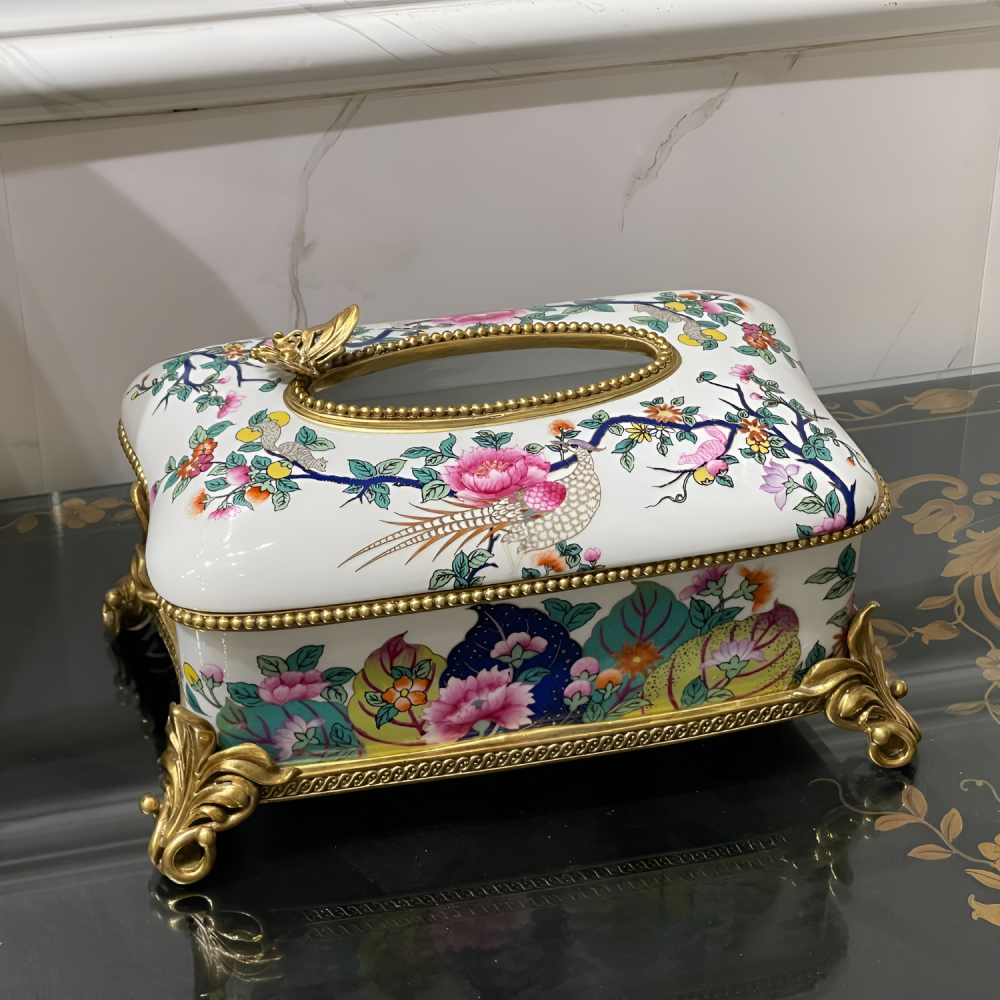 Hộp để giấy sứ châu Âu họa tiết đồng sang trọng, tinh tế