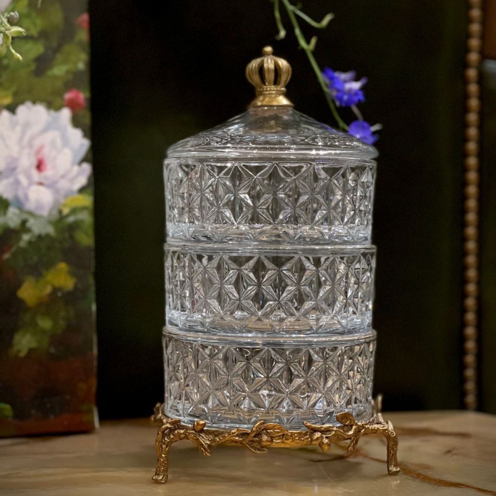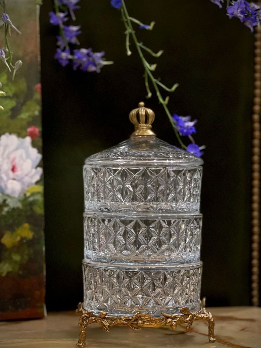 Hộp pha lê 3 ngăn được tạo nên từ pha lê cao cấp được khắc sâu trên bề mặt cùng với thiết kế 3 ngăn tách rời dễ dàng vệ sinh