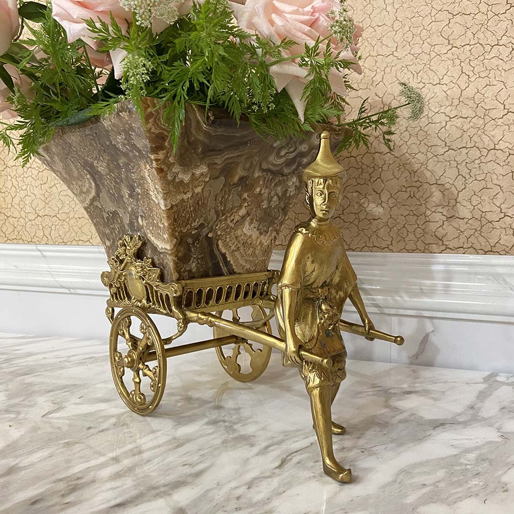 Màu đỏ và trắng của khối đá cẩm thạch đan xen nhau tạo nên bản nhạc giao hưởng về thiên nhiên tuyệt vời, được đặt lên phần đồng là người nam đang kéo xe