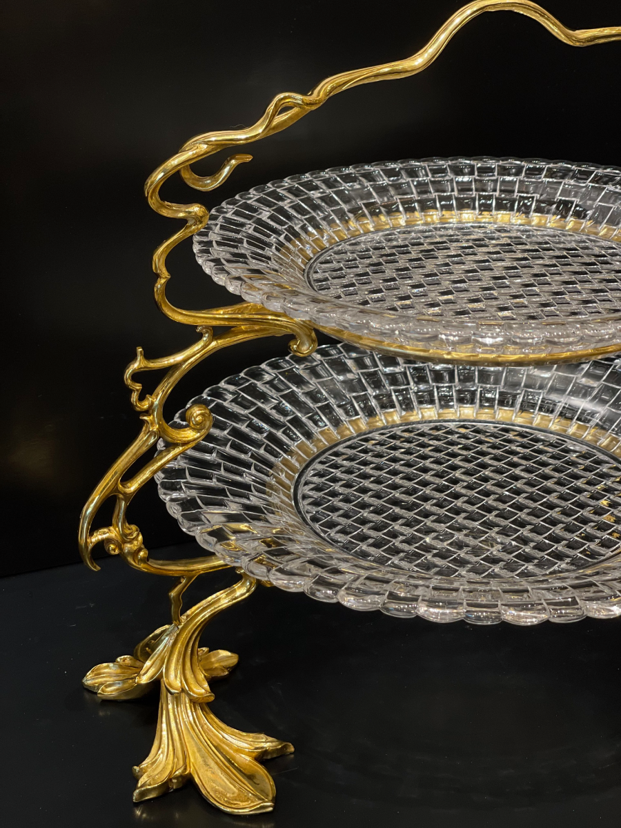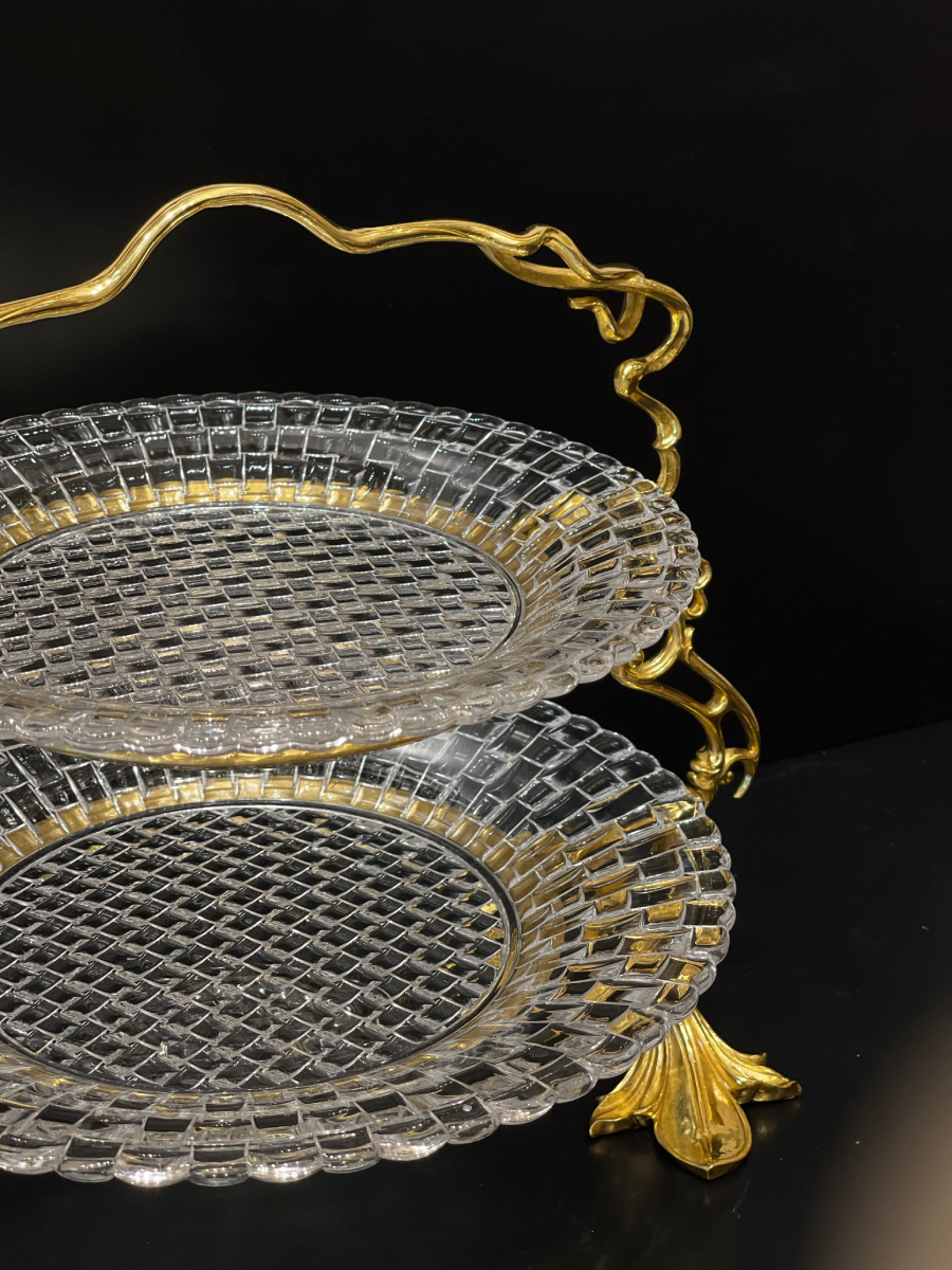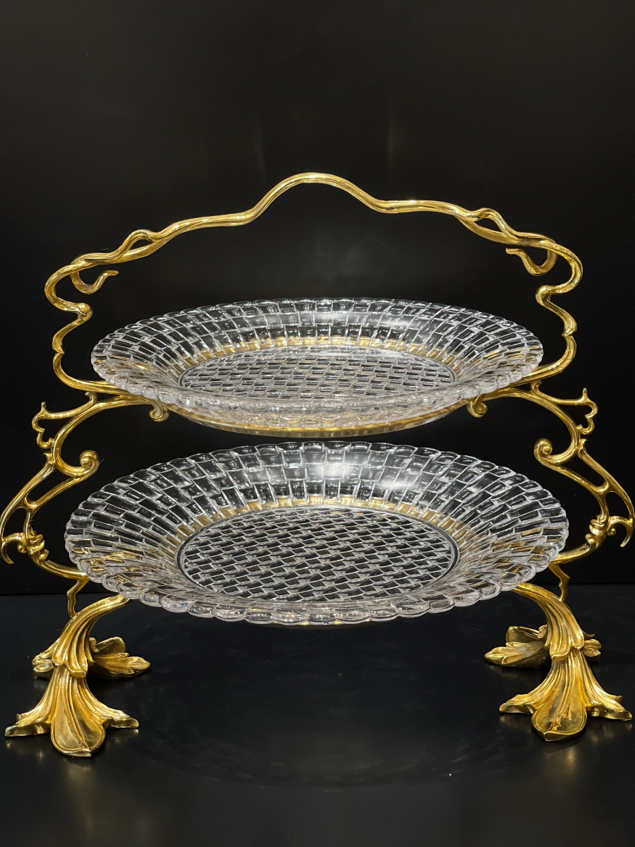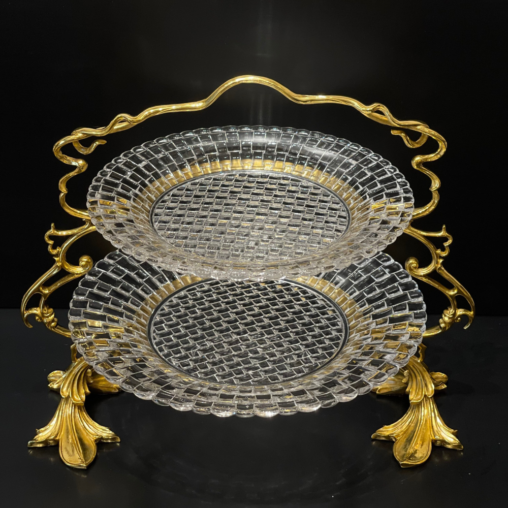 Khay Pha Lê 2 Tầng Giá Đỡ Bằng Đồng Mạ Vàng – Sang Trọng & Tinh Tế