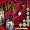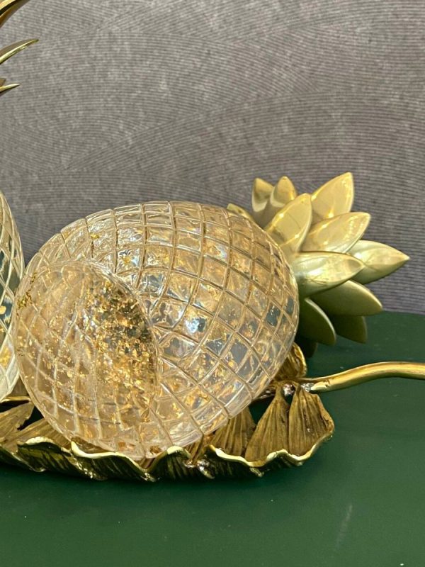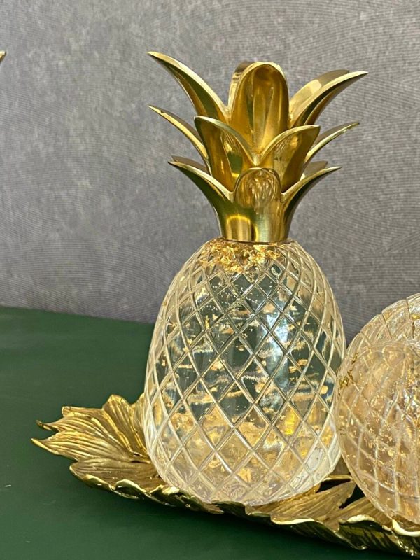 Thân quả dứa được tạo hình từ thuỷ tinh bên trong có quỳ vàng, phần lá dứa bằng đồng mạ vàng công nghiệp.