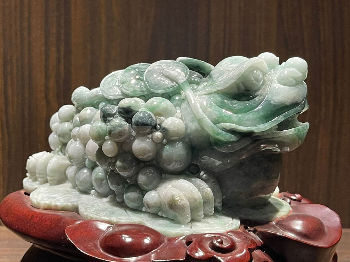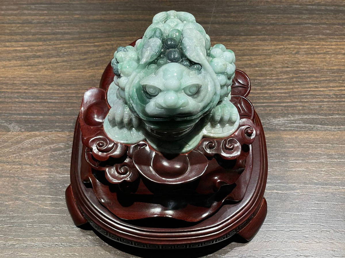 Xuất hiện với miệng ngậm đồng tiền, bên cạnh lưng có mang hai xâu tiền và 3 chân đạp lên lớp tiền hoặc đạp lên bao tiền tượng trưng cho việc mang vàng bạc tiền tài vào nhà.