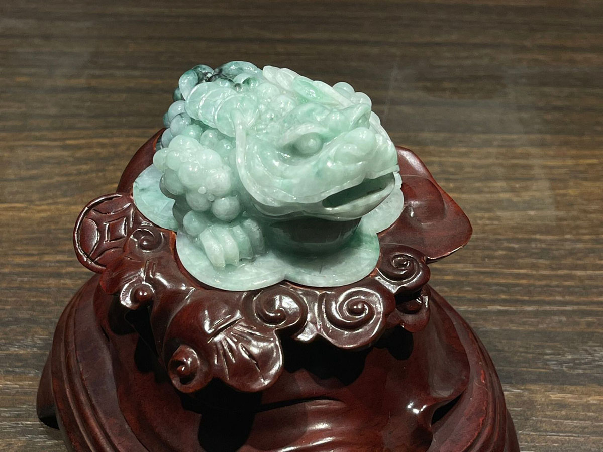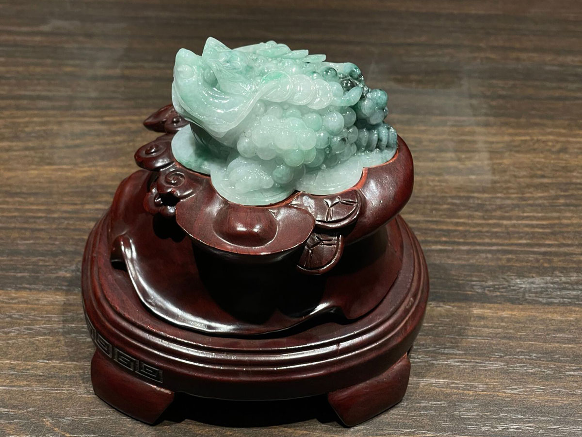 Xuất hiện với miệng ngậm đồng tiền, bên cạnh lưng có mang hai xâu tiền và 3 chân đạp lên lớp tiền hoặc đạp lên bao tiền tượng trưng cho việc mang vàng bạc tiền tài vào nhà.