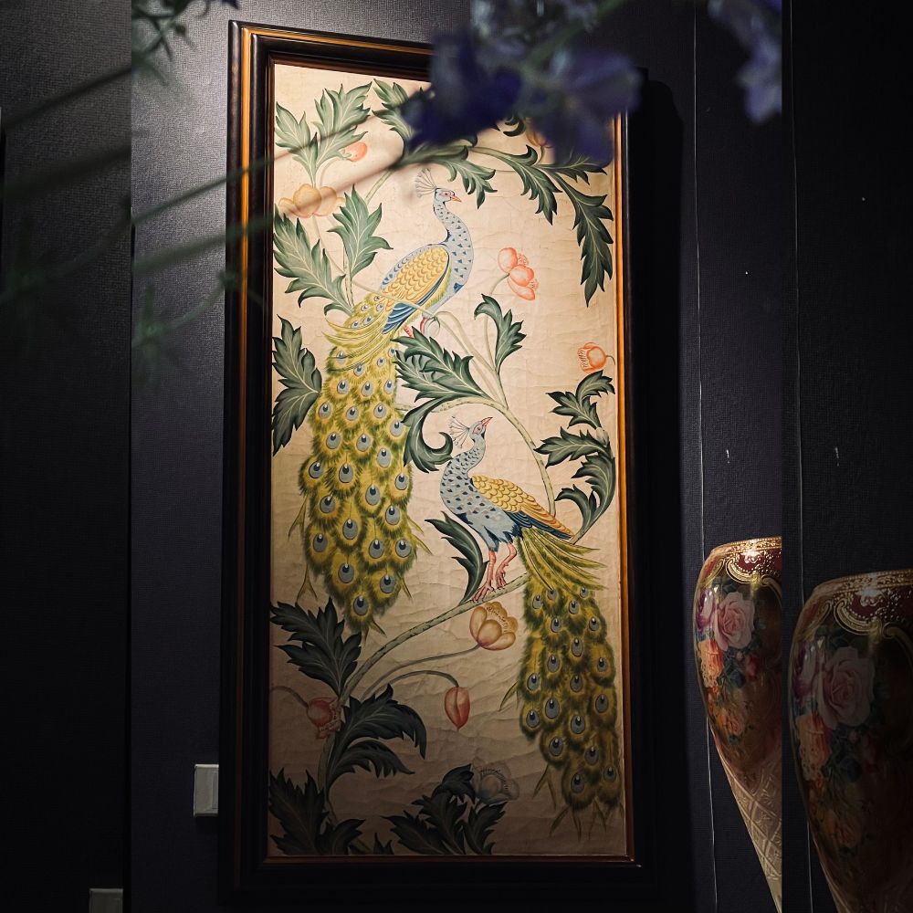 Tranh gỗ châu âu được khắc hoạ hình ảnh đôi chim công vẽ sơn mài trên bề mặt gỗ vô cùng tỉ mỉ bắt mắt.