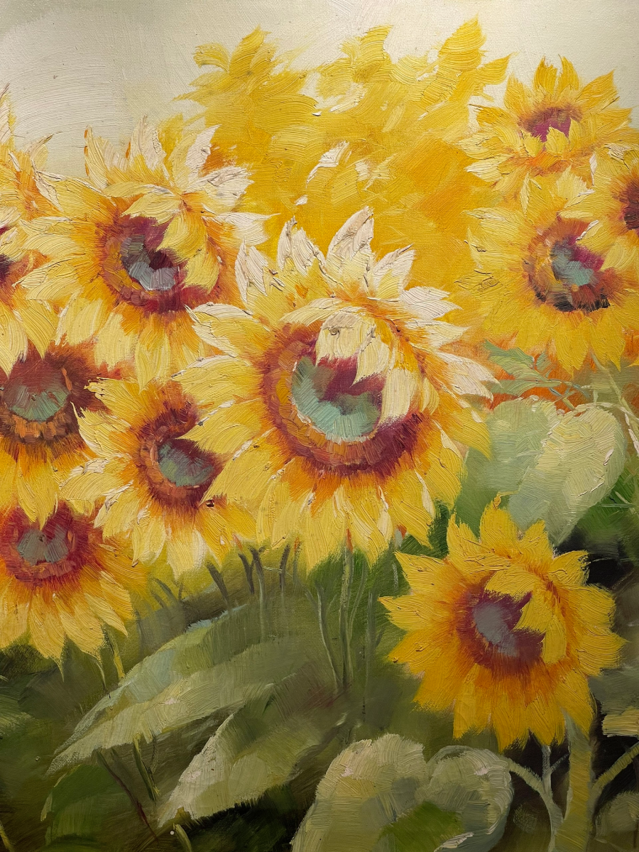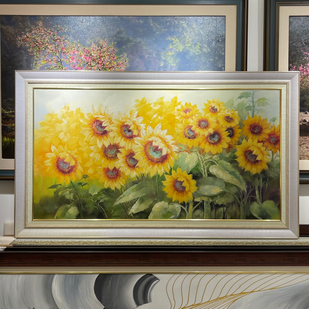 Hoa hướng dương được biết đến như biểu tượng của ánh nắng và sự sống. Nó luôn hướng về phía mặt trời, biểu trưng cho sự kiên cường và lòng trung thành. Tranh sơn dầu hoa hướng dương thường mang lại cảm giác ấm áp và tràn đầy năng lượng, khiến không gian sống trở nên sinh động hơn.