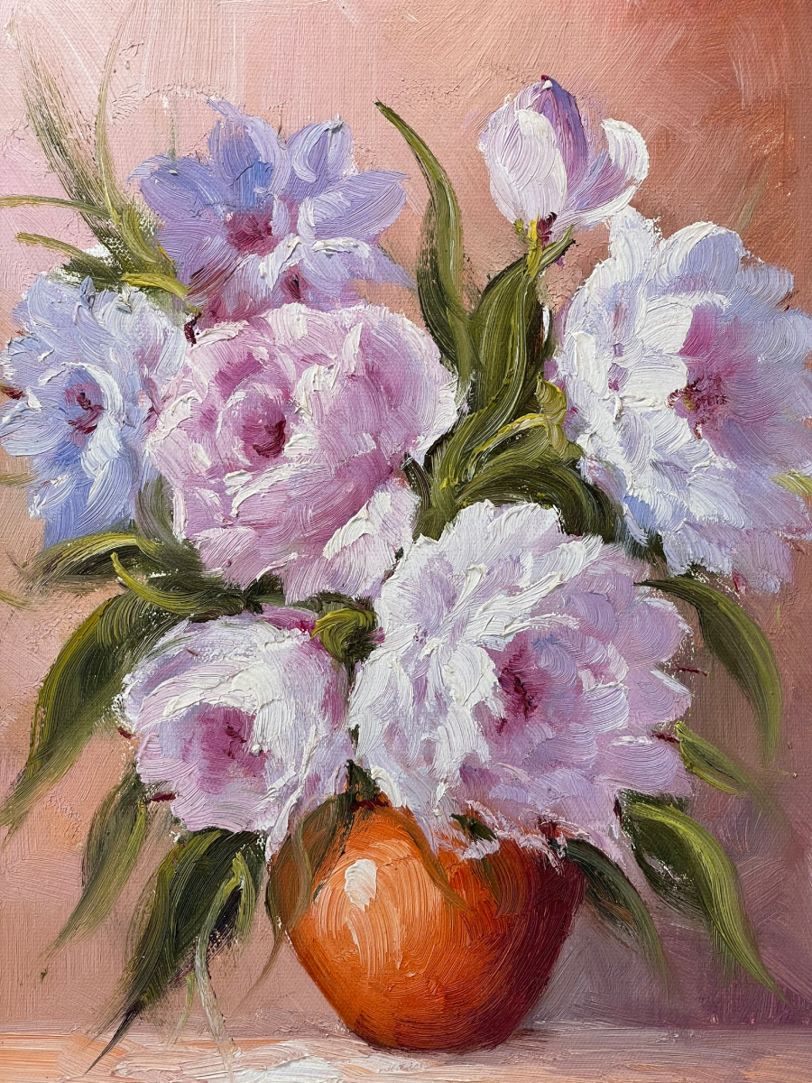 Tranh Sơn Dầu Hoa Mẫu Đơn Hoa Màu Hồng Chanh Tĩnh Vật: Một Tác Phẩm Nghệ Thuật Đầy Sắc Màu