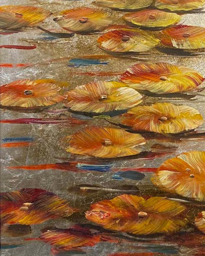 Tranh hoa sen vẽ theo phong cách hiện đại trên nền dát bạc
