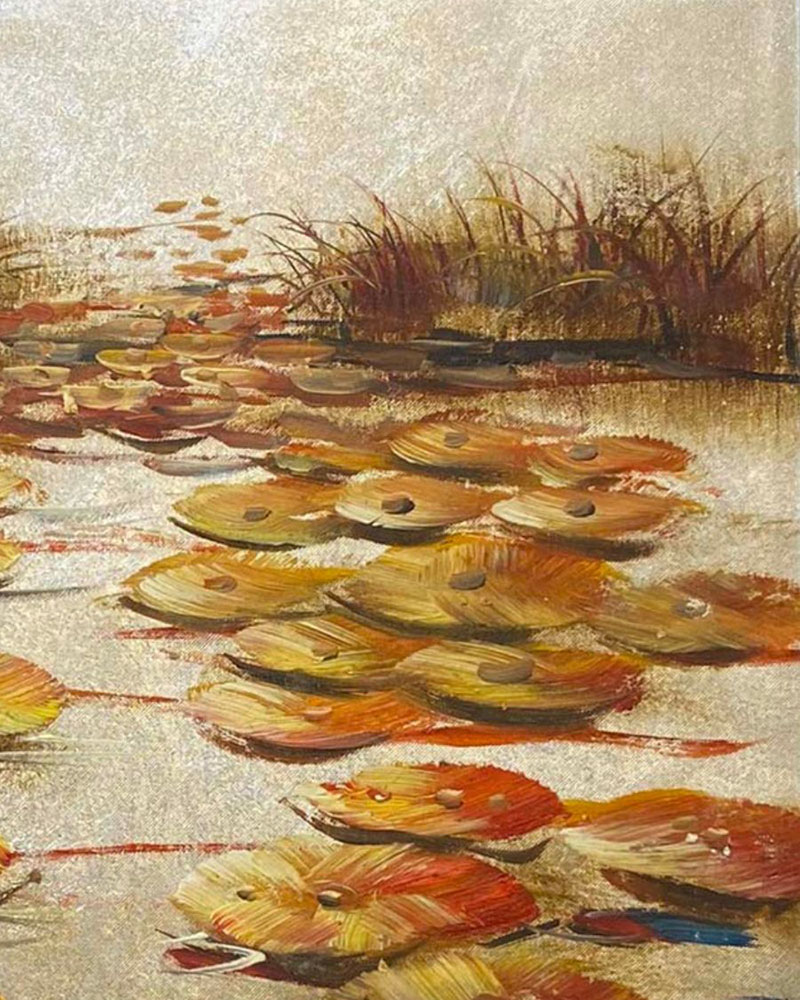Dát bạc ngày trước chỉ được sử dụng trong sơn mài nhưng với sự sáng tạo không ngừng theo thời gian các họa sĩ đã sử dụng kỹ thuật đó kết hợp với sơn dầu trên vải toan sáng tác ra bức tranh hồ sen sớm