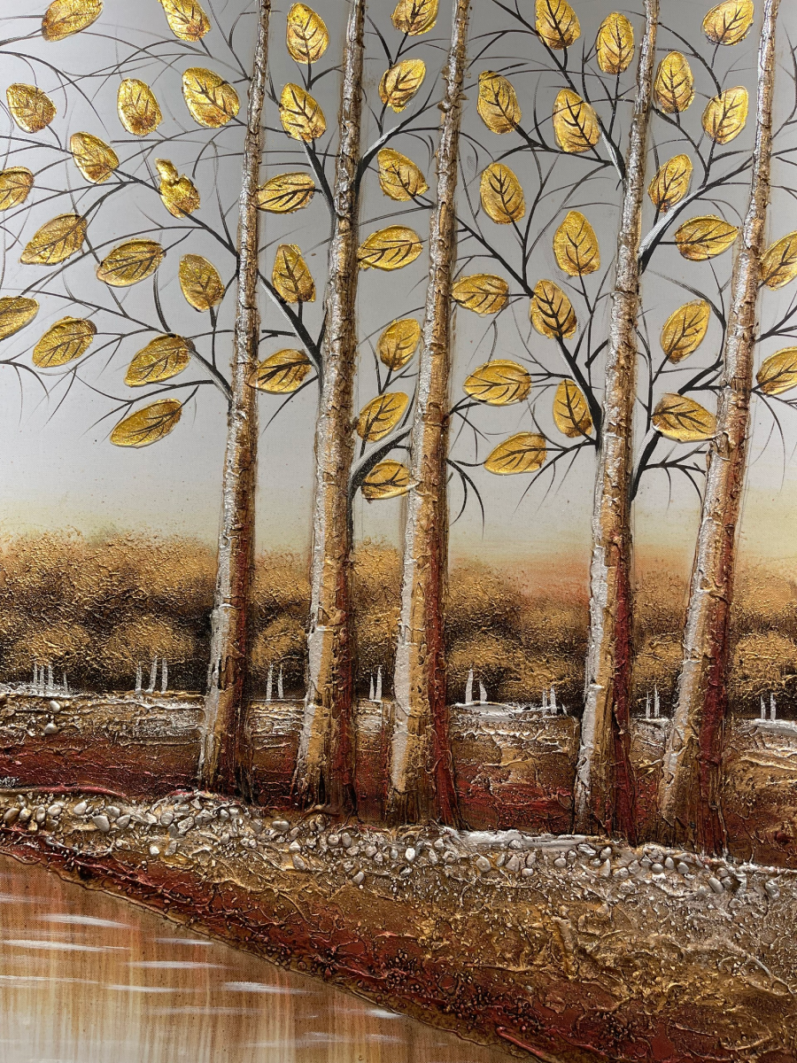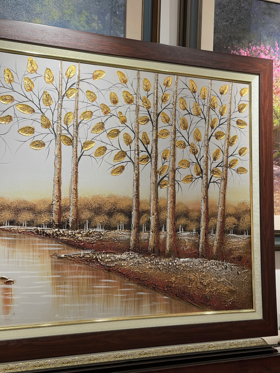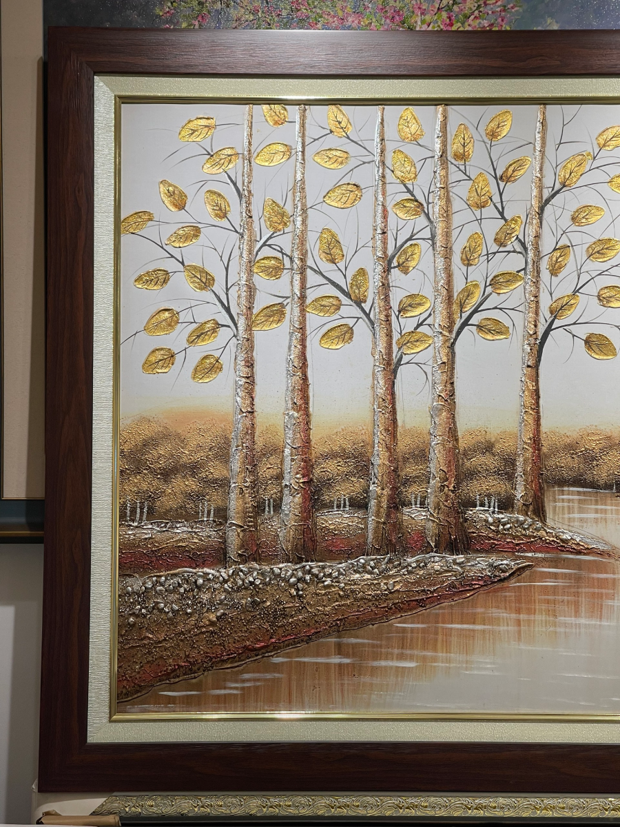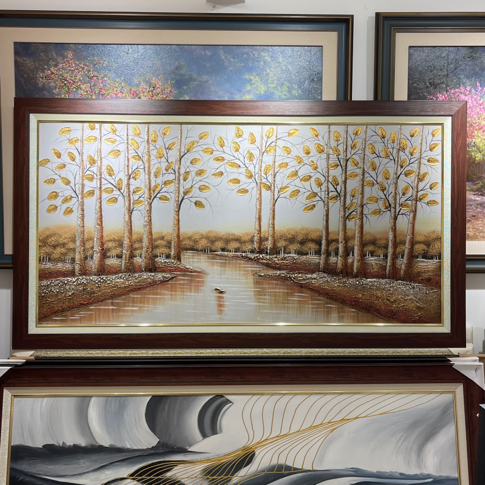 Tranh sơn dầu dát vàng Rừng cây kim tiền: Mang tài lộc, may mắn vào nhà
