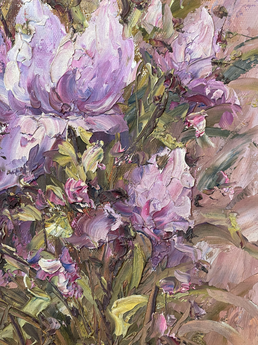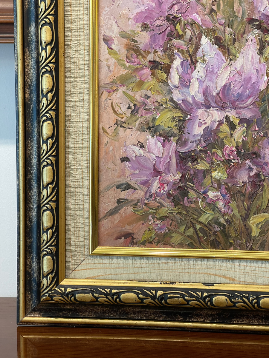 Tranh vẽ hoa bằng sơn dầu: Nghệ thuật bay bổng với sắc tím mộng mơ