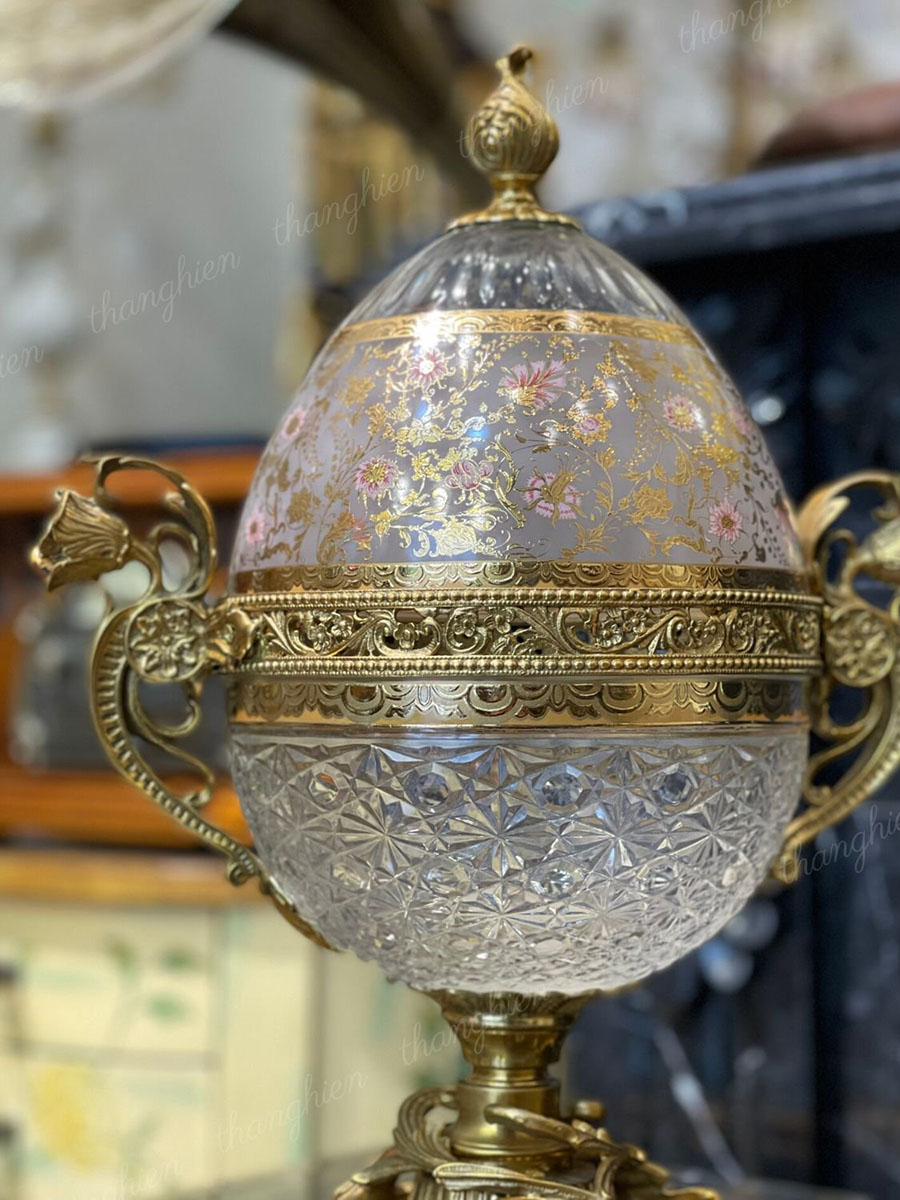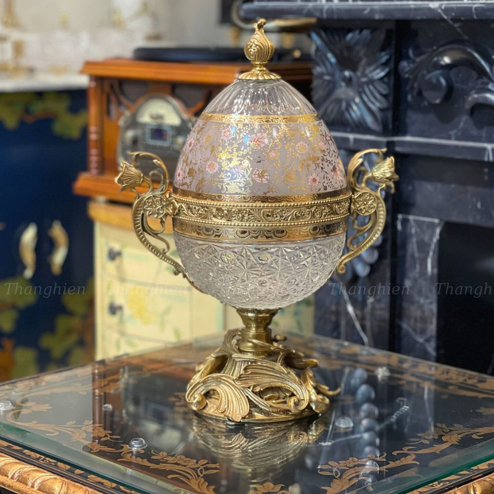 Với thiết kế trứng pha lê trang trí có thể đóng mở nắp không chỉ để trưng bày trên bàn, kệ mà có thể dùng đựng bánh, kẹo, mứt trên bàn nước, bàn ăn hay khu sinh hoạt chung và cũng là món quà tặng đầy ý nghĩa.