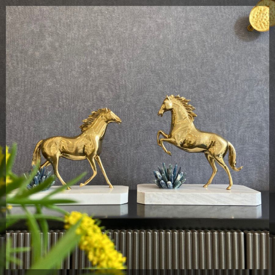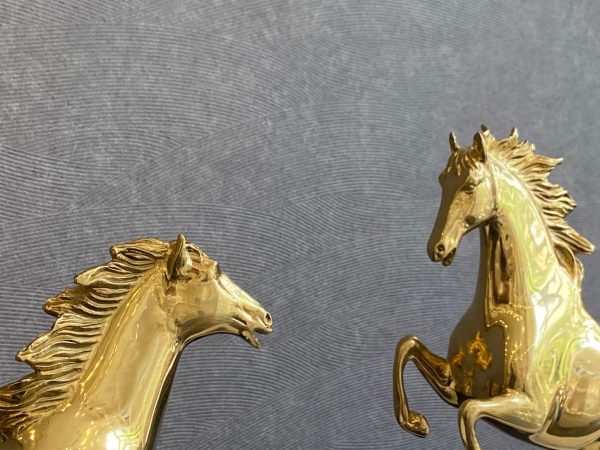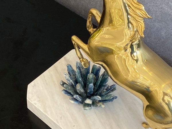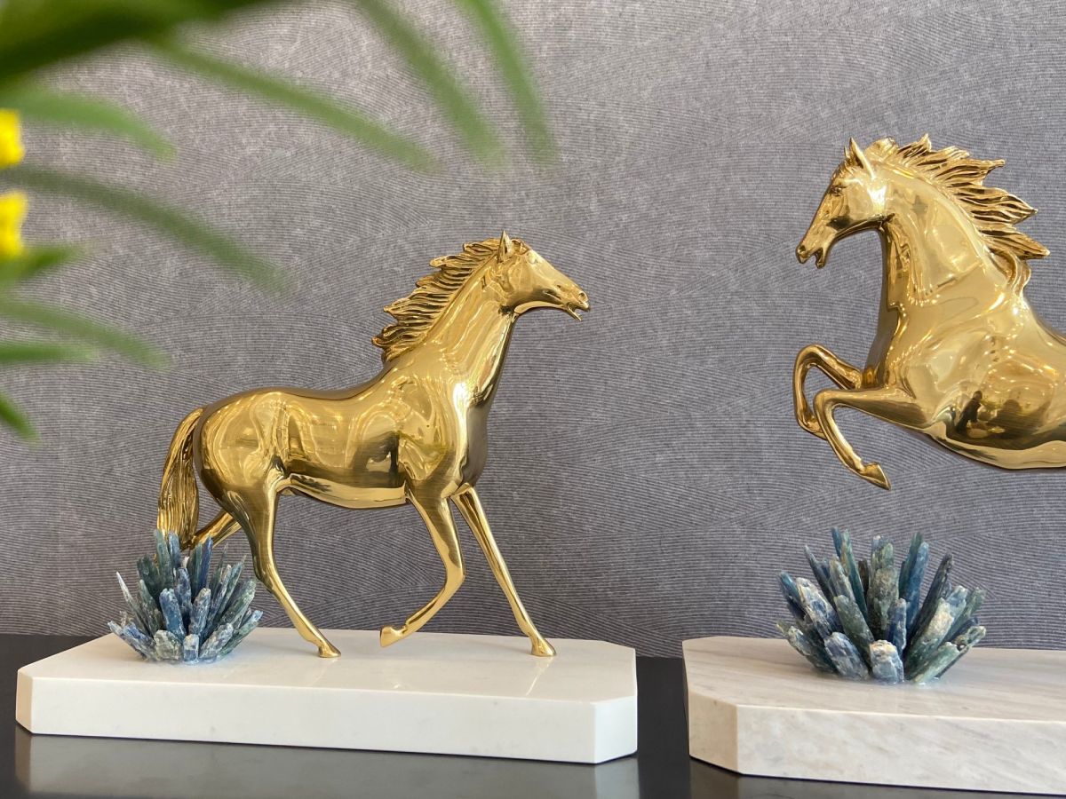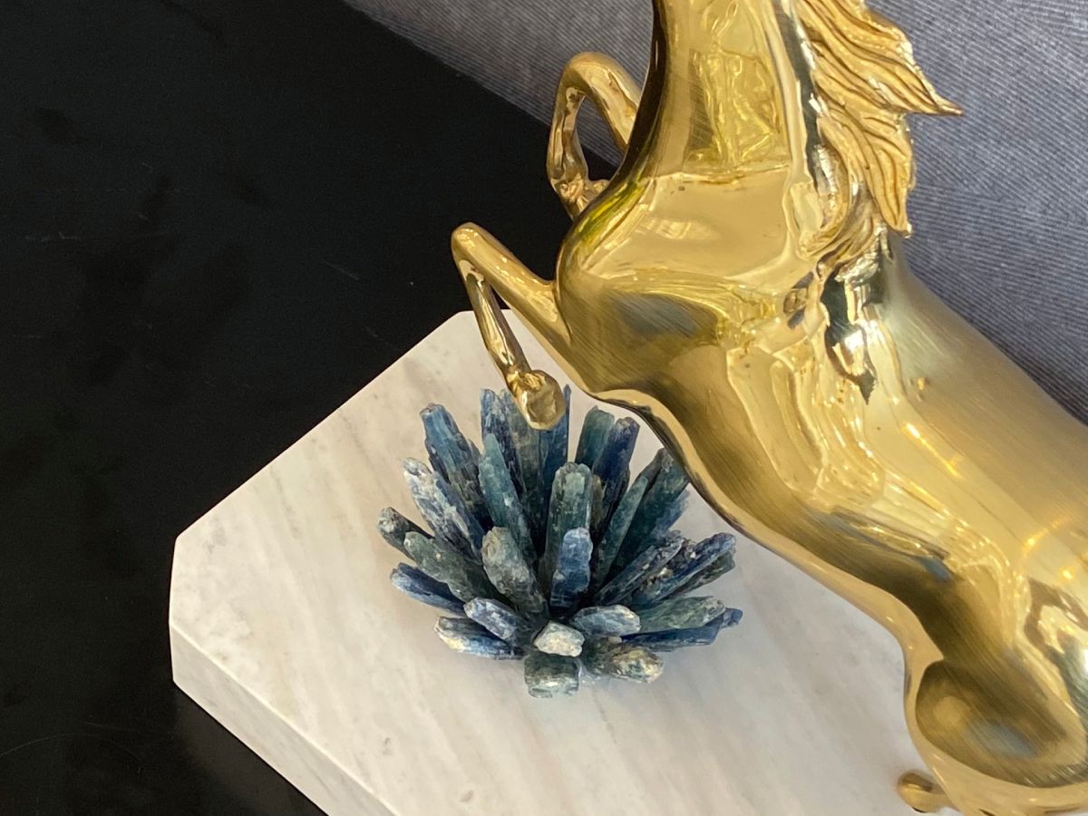 Tượng ngựa được tạo nên từ đồng mạ vàng và kết hợp khóm đá thạch anh . Đế là khối đá cẩm thạch trắng tạo nên vẻ đẹp nổi bật sang trọng.
