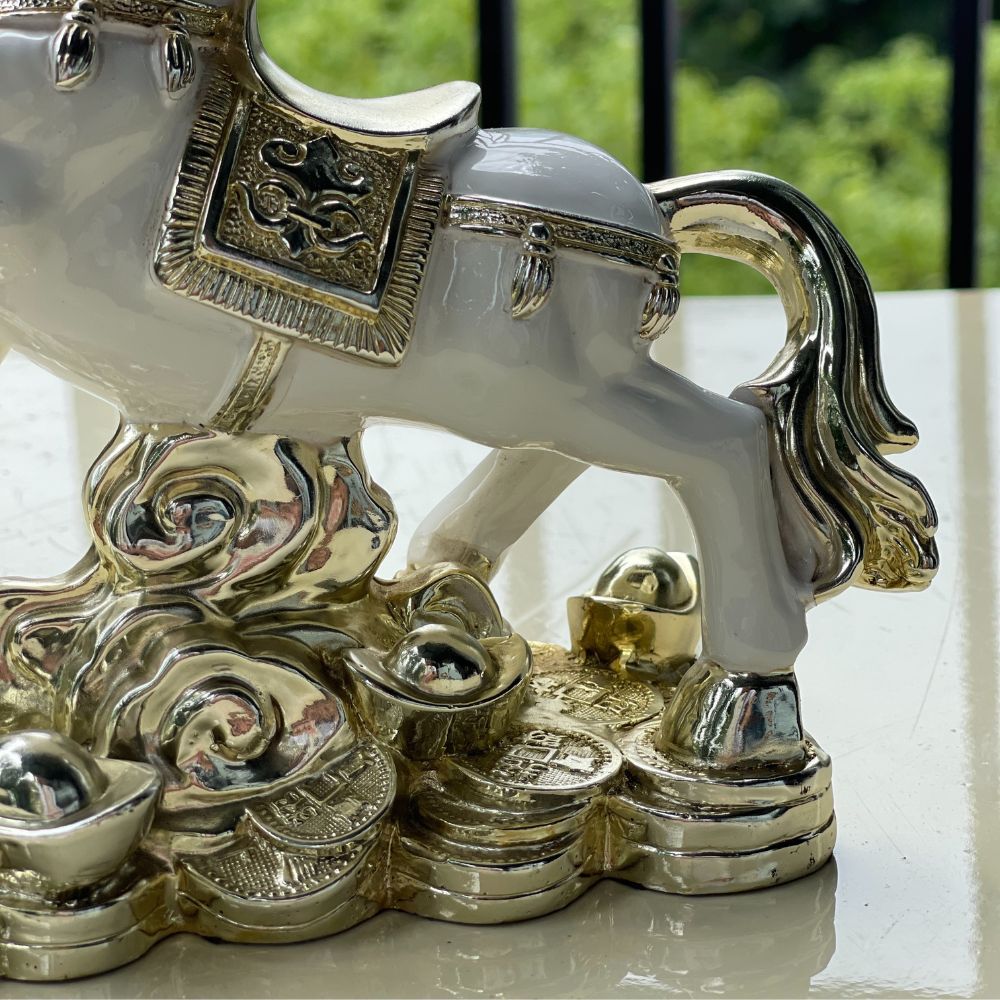 Mô hình ngựa được tạo nên từ chất liệu tổng hợp cao cấp, thiết kế vô cùng tinh tế sang trọng và bắt mắt kết hợp vẽ vàng