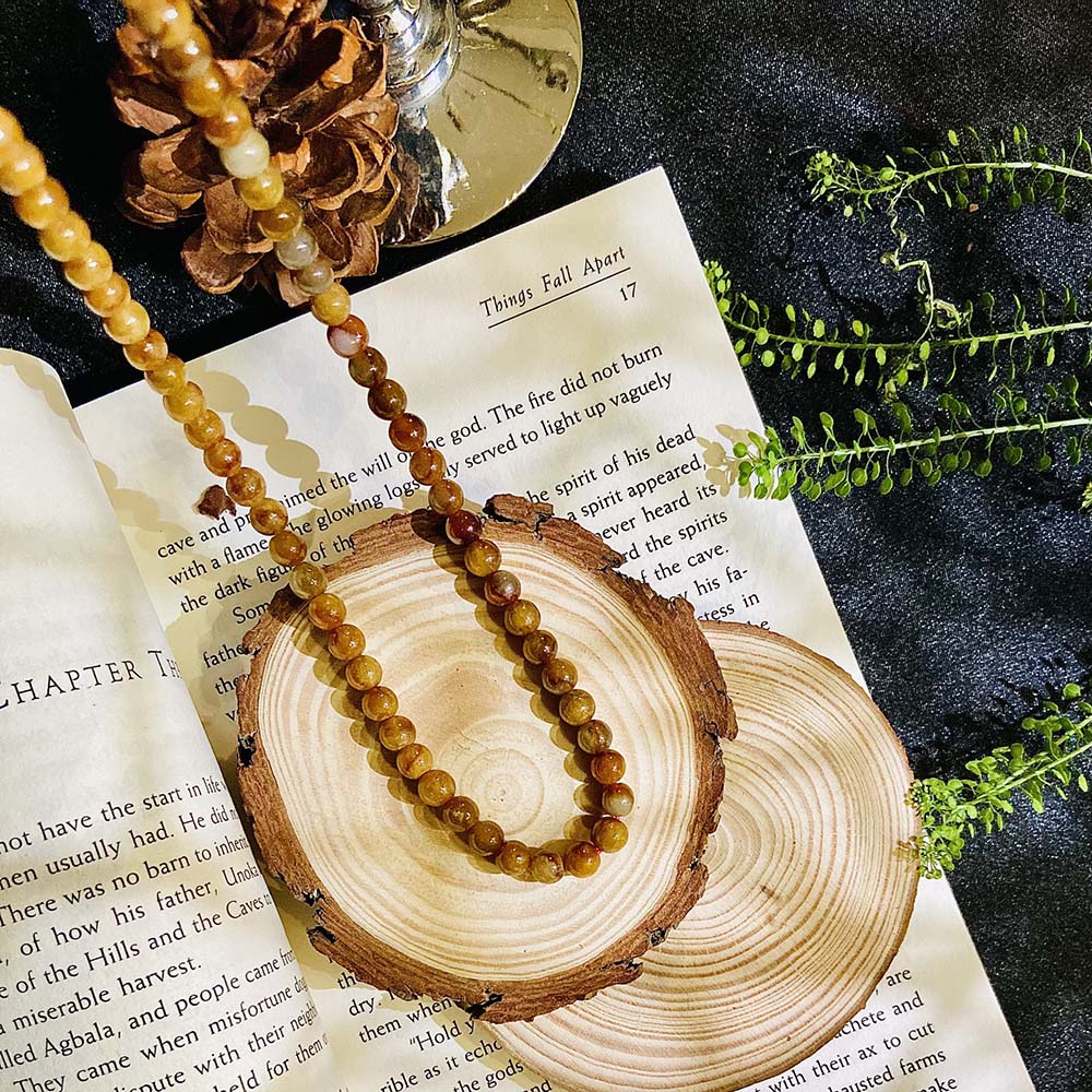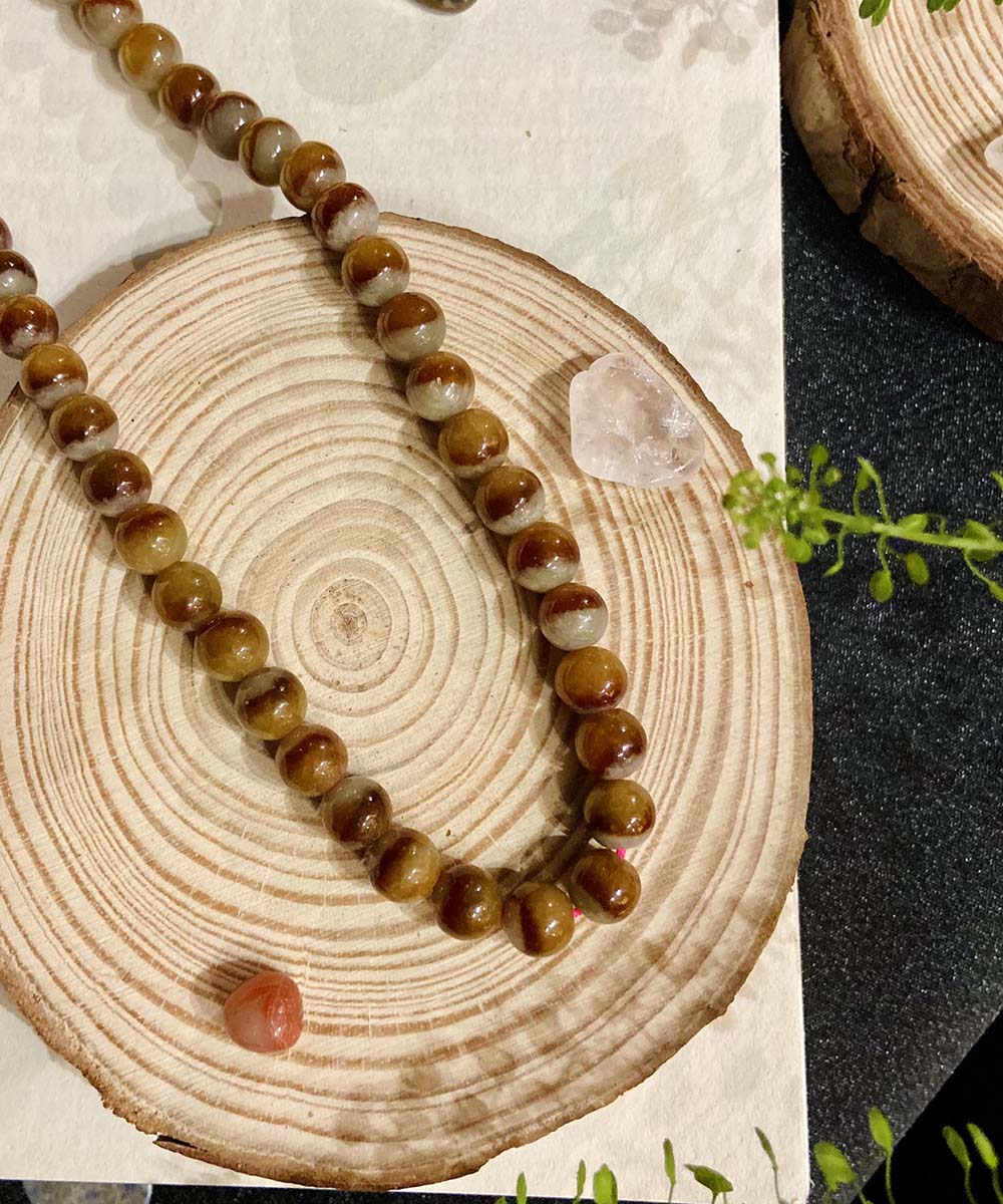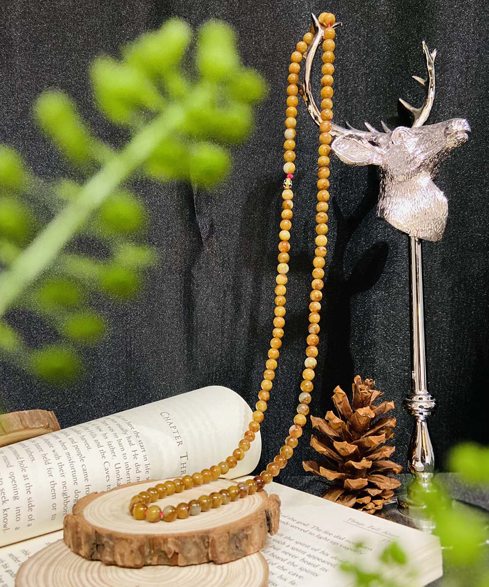 Vòng ngọc cuốn tay cũng có thể sử dụng làm vòng đeo cổ tùy theo mục đích sử dụng. Vòng có tone màu đỏ vàng nhẹ về tính thẩm mỹ dễ kết hợp với quần áo.