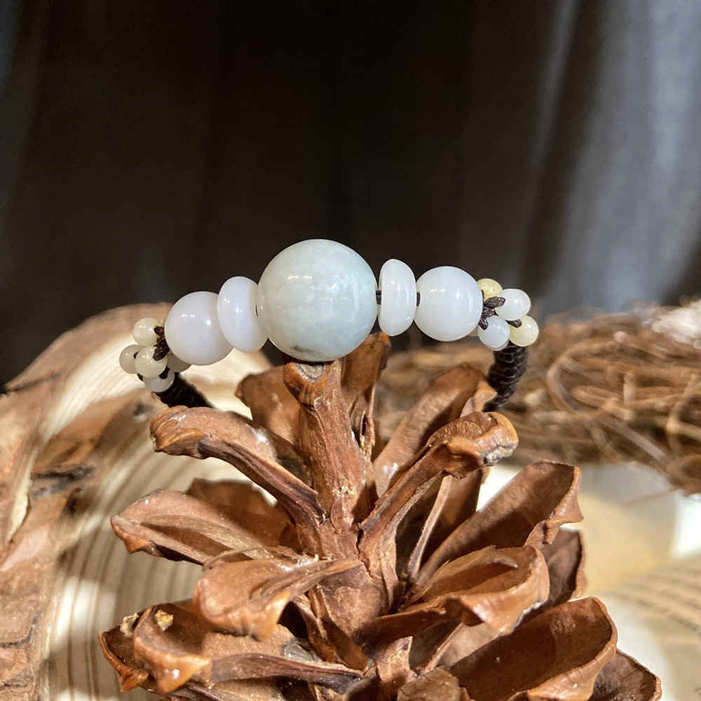 Vòng tay hoa đá với những viên đá tròn xếp cạnh nhau tượng trưng cho trời và đất, ngũ hành, âm dương.